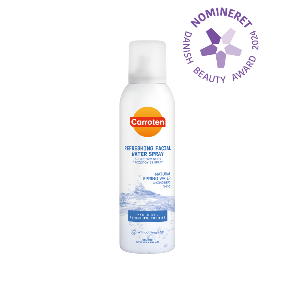 Vi har fundet Carroten Facial Water Spray – Ml – Hos Frisøren Baronen fra Carroten hos Frisøren og Baronen i kategorien After Sun. Carroten Facial Water Spray Fugt, mineraler & friskhed i én spray Giv din hud det, den længes efter i sommervarmen Carroten Facial Water Spray er en ultrafin ansigtsmist, der hurtigt genskaber hudens fugtbalance og friskhed. Sprayen er rig på naturl
