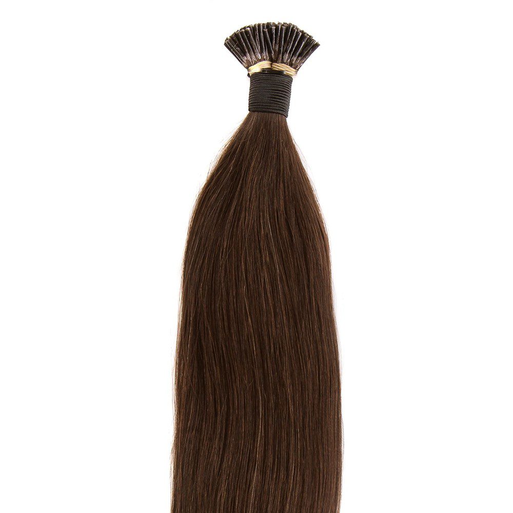 Cold fusion extensions totter med I tip keratin I mørkebrun farvekode #2. Håret passer til dig med mørkebrunt eller mørk kastanjefarvet hår med røde under toner.