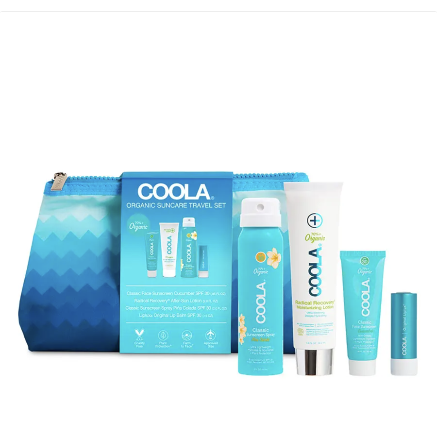 Vi har fundet Coola Signature Piece Travel Kit – Solcreme – Hos Frisøren Baronen fra Coola hos Frisøren og Baronen i kategorien Creme Solcreme. COOLA Signature 4 Piece Travel Kit Økologisk solpleje til dig på farten Leder du efter den perfekte rejsemakker til din hudplejerutine? COOLA Signature 4 Piece Travel Kit er et stilfuldt og praktisk sæt med fire bestsellere fra COOLA, ideelt til både fer