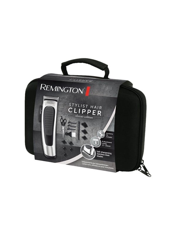 Vi har fundet Remington Hårtrimmer Hc Stylist Hair Clipper fra Remington hos Proshop.dk i kategorien Haartrimmer. Harklipper, trådløs, Selvslibende blade, Reguleringshåndtag, 8 kamme – til forskellige hårlængder (3-25mm), 30 minutters driftstid, Opladningsindikator, Opbevaringstaske, Opdelingsklips, inkl. Frisørkappe – Kam – Saks – Nakkebørste, sølvUdfør din trimning