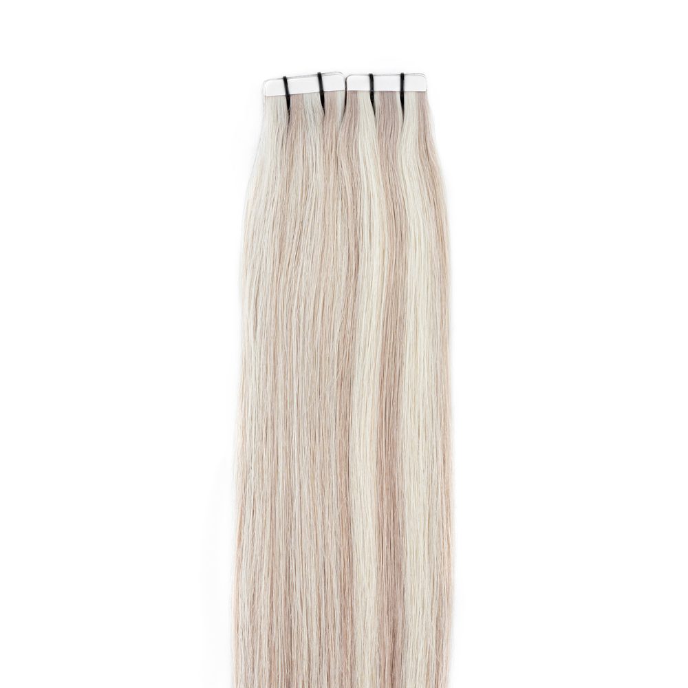 Tape extensions i lys askblond og mørk askblond farvekode #16/60.